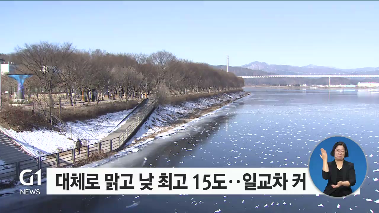 낮 최고 기온은 영서 지역이 11도에서 13도, 영동 지역은 13도에서 15도로 평년보다 3∼4도가량 높아 비교적 포근하겠습니다.