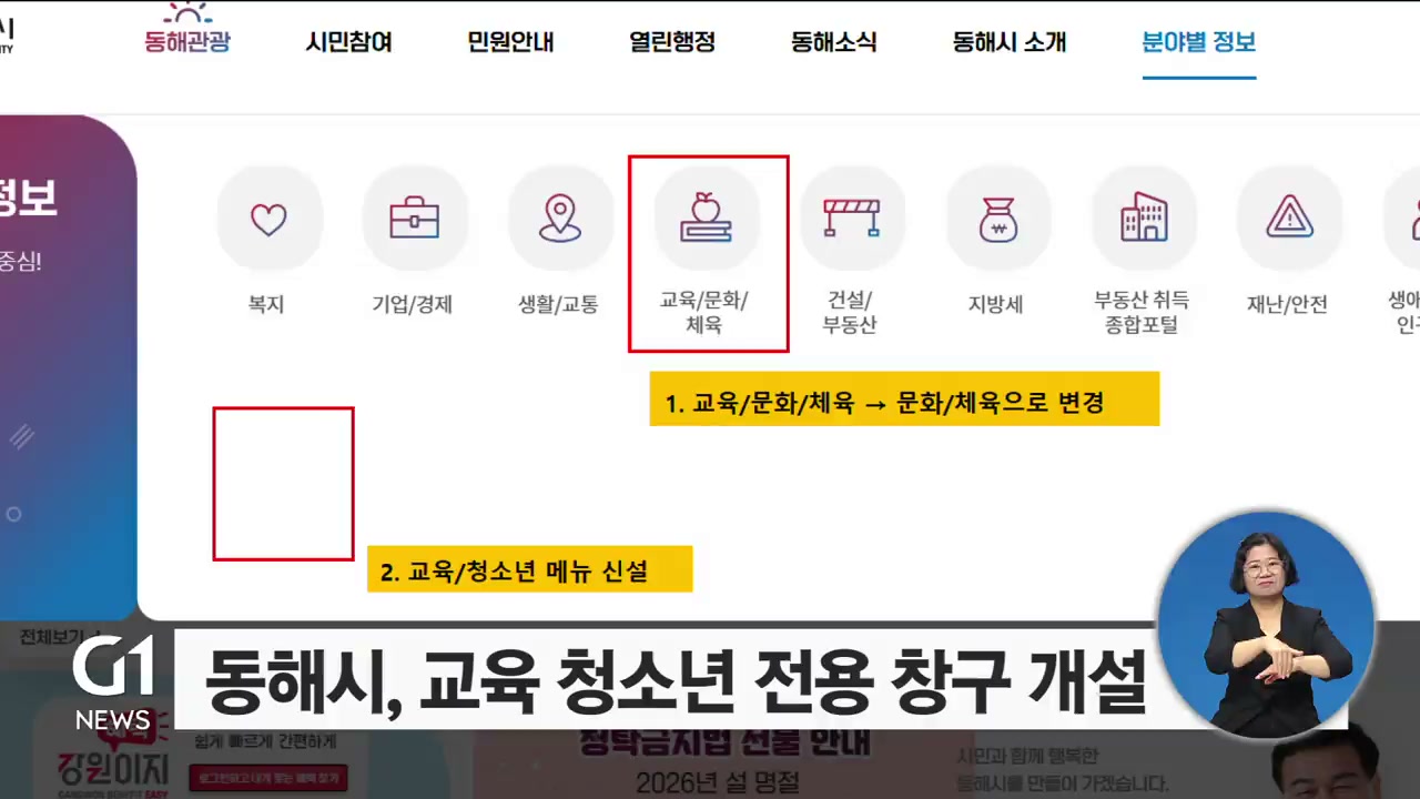 동해시가 다음달 시 홈페이지에 '교육 청소년' 전용 메뉴를 신설해 운영합니다.