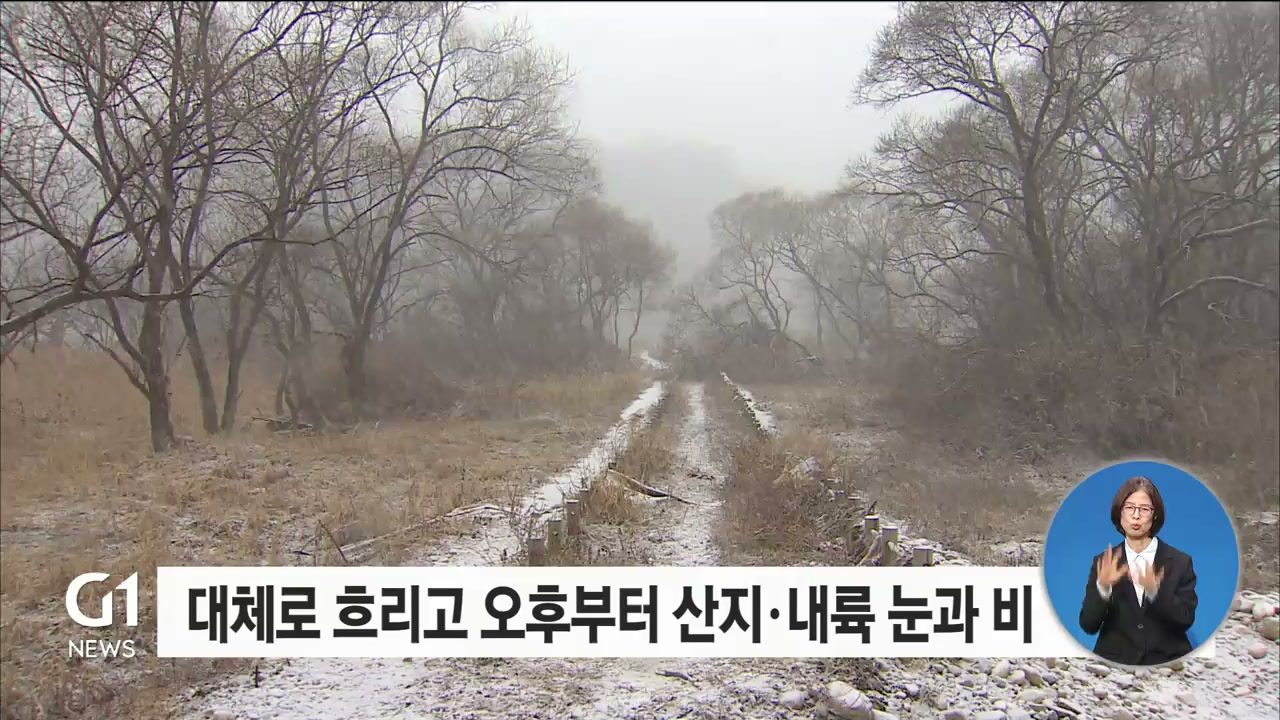 오늘 강원자치도는 대체로 흐린 가운데, 늦은 오후부터 내륙과 산지를 중심으로 비와 눈이 내리겠습니다.