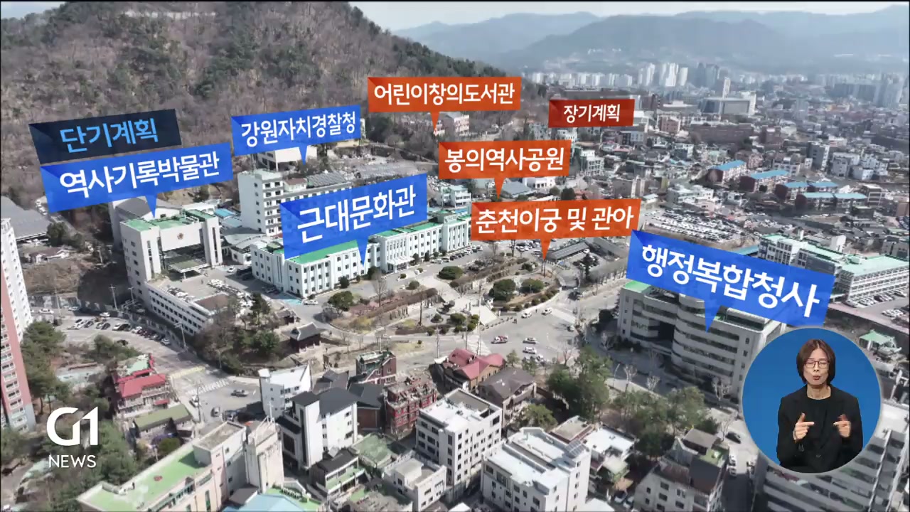 /현재 민원실 등으로 활용 중인 별관은 철거하고, 옛 춘천이궁과 조선시대 관아를 재현하는 한편 이궁 위쪽으로는 봉의 역사 공원을 만듭니다./