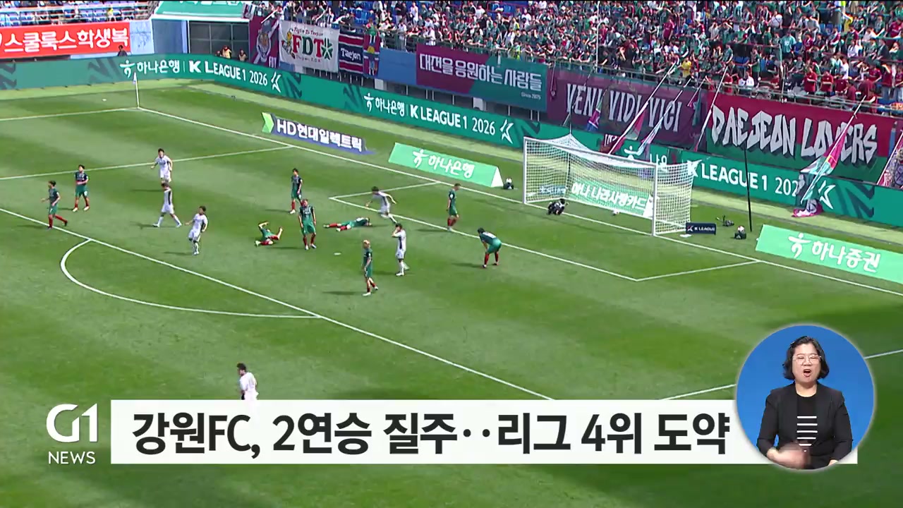 강원FC는 어제(12일) 대전월드컵경기장에서 열린 '하나은행 K리그1 2026 7라운드' 원정 경기에서 2대 0으로 승리했습니다.