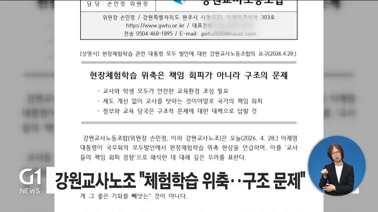 강원교사노동조합이 어제(28일) 성명을 내고 현장체험학습 위축 현상을,