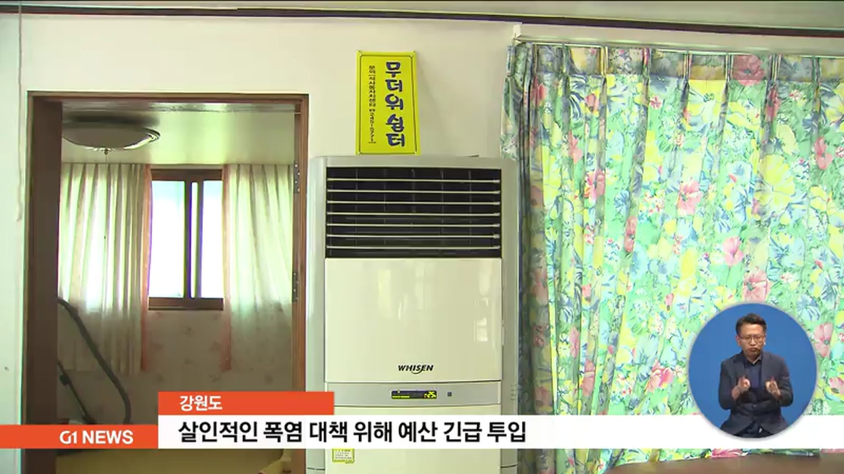 강원도는 인명피해 최소화를 위해 18개 시군의 재난취약 계층 2만여 명에게 냉풍기와 무더위 예방키트 등을 긴급 지원하는 한편,