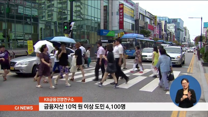 KB금융경영연구소는 '2018 한국 부자보고서'에에서, 금융자산이 10억원 이상인 사람을 '부자'로 보고 여기에 해당하는 도민은 4천100명이라고 밝혔습니다.