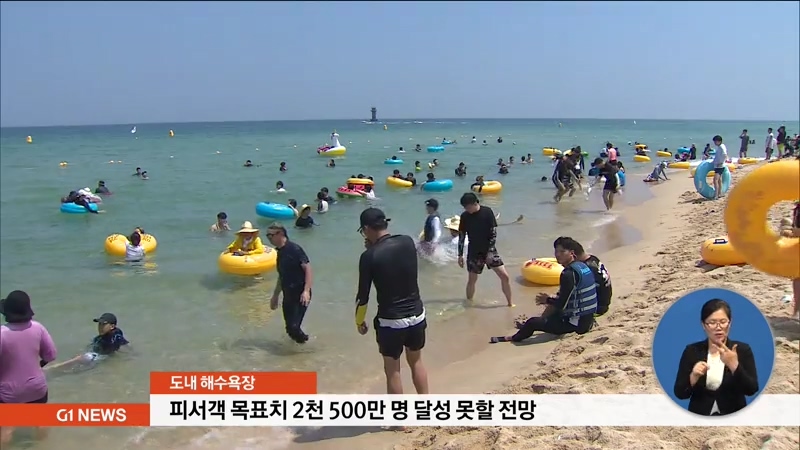 기록적인 폭염 탓에 도내 동해안 해수욕장을 찾은 피서객 수가 당초 목표치인 2천500만명에 못미칠 것으로 전망됩니다.