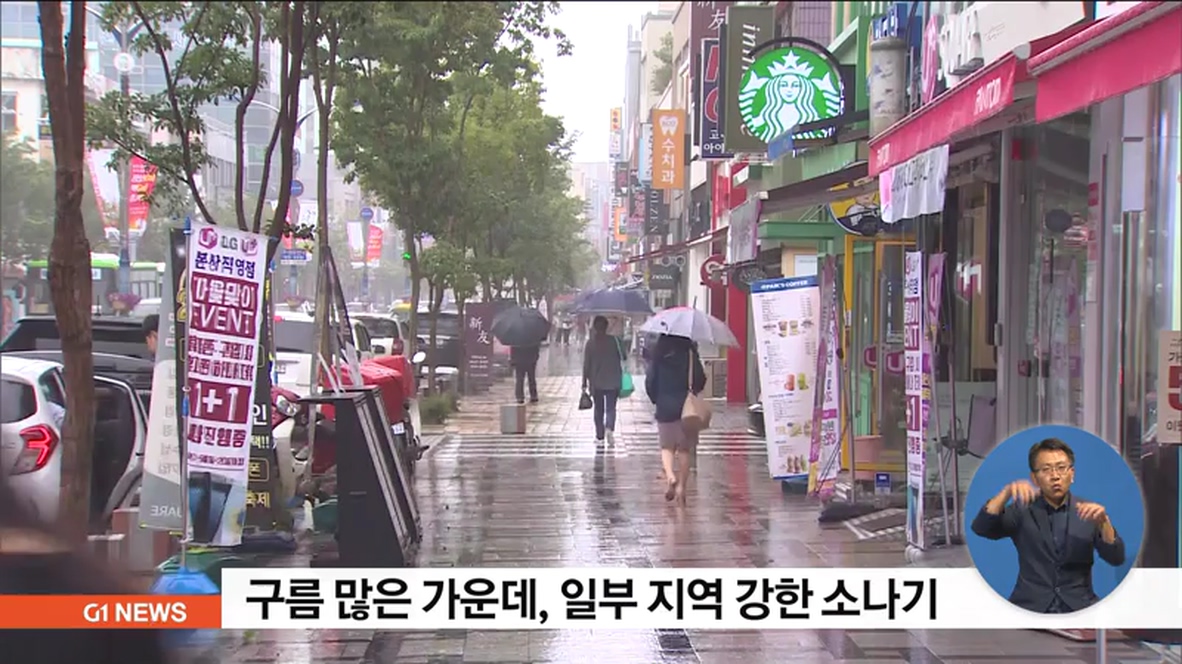 구름 많은 가운데, 일부 지역 강한 소나기