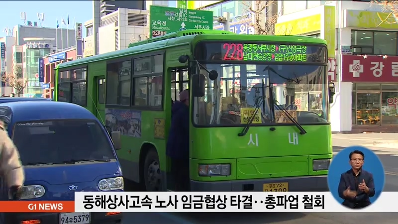 강릉과 동해 등 영동지역 4개 시군에서 시내버스와 시외 고속버스 노선을 운행중인 동해상사고속이 노사간 임금협상 타결로 오늘(28일)로 예정됐던 총파업을 철회했습니다.