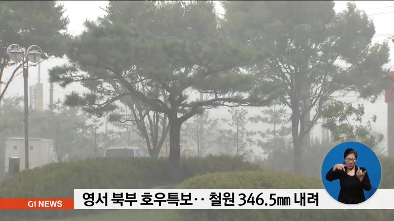 지금까지 철원 동송이 346.5mm, 화천 광덕산254, 인제 서화 250.5, 양구 해안 231mm 등 영서 북부지역을 중심으로 많은 양의 비가 내렸습니다.