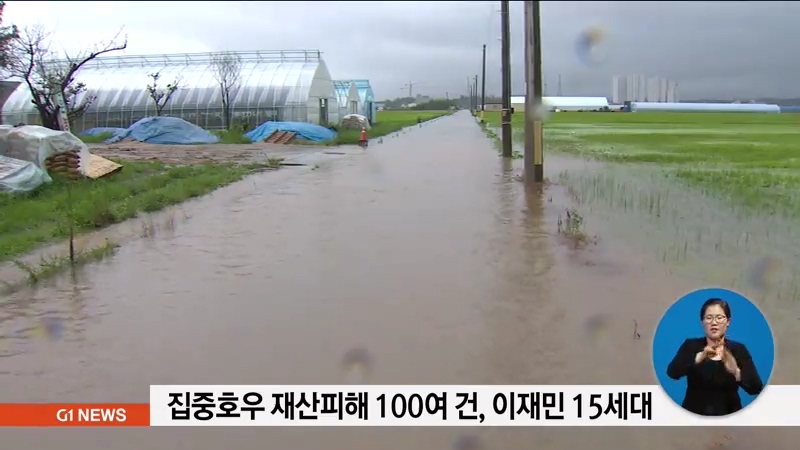 집중호우 재산피해 100여 건, 이재민 15세대