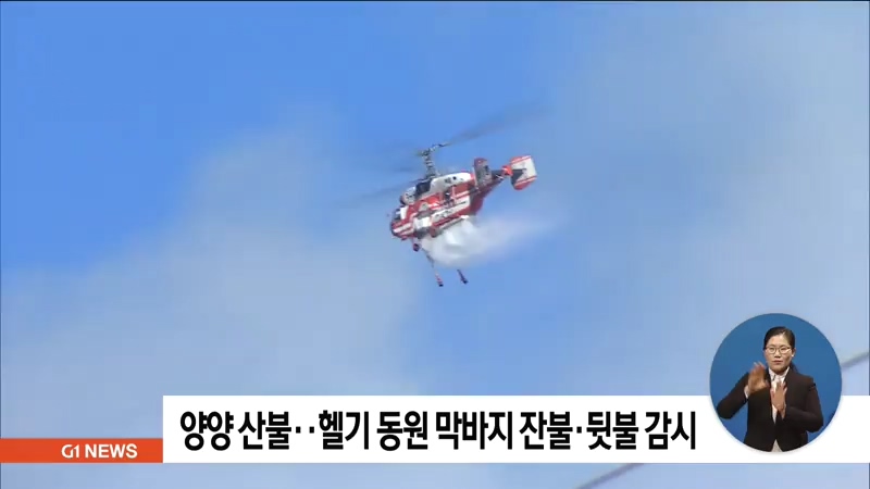 양양 산불, 헬기 동원 막바지 잔불·뒷불 감시