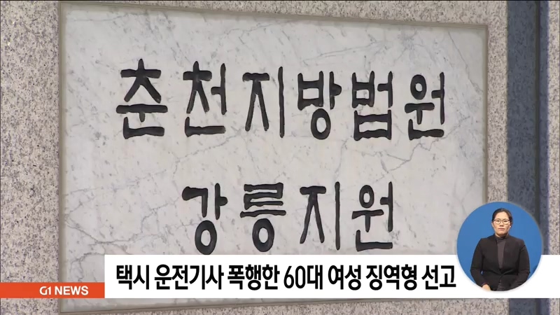 춘천지법 강릉지원 형사1단독 이상원 부장판사는 택시 운전기사를 폭행한 혐의로 기소된 62살 여성 강모씨에게 징역 8월에 집행유예 2년을 선고하고, 120시간의 사회봉사를 명령했습니다.
