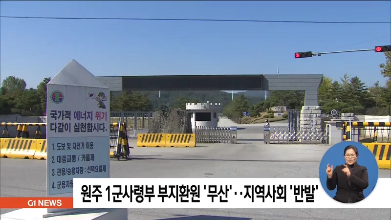 원주 1군사령부 부지환원 '무산'..지역사회 '반발'