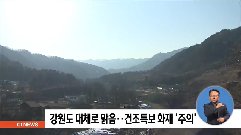 강원도는 오늘 대체로 맑겠으며, 도 전역에 건조특보가 발효되는 등 건조한 날씨가 계속되겠습니다.