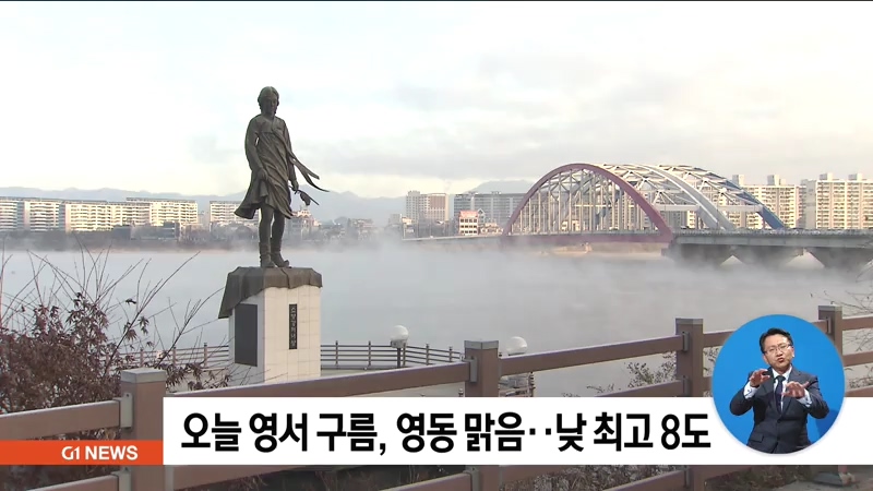 오늘 강원 영서지역은 낮 동안 구름이 많고, 눈이 날리는 곳이 있겠고, 영동지역은 대체로 맑겠습니다.