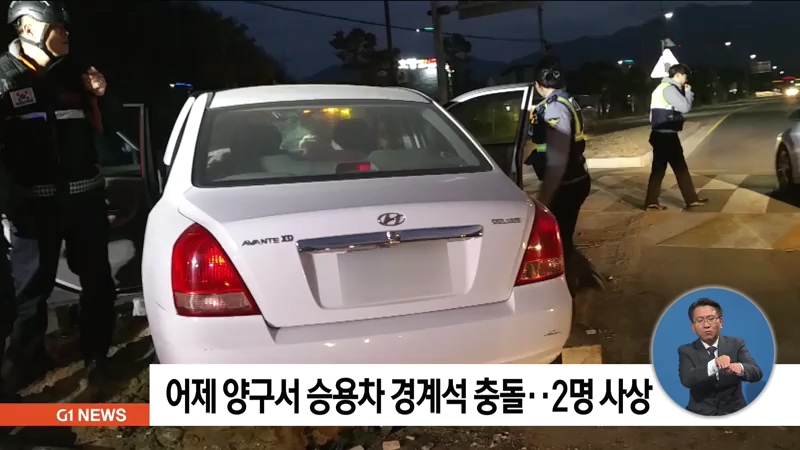 어제 오후 5시 45분쯤 양구군 양구읍 송청교차로에서 아반떼 승용차가 도로 경계석을 들이받았습니다.