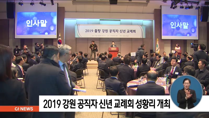 강원도 출신 공직자와 출향 인사 등이 한자리에 모여 '새로운 강원'을 위해 인적 네트워크를 다지는 '2019 강원 공직자 신년 교례회'가 어제 저녁, 한국프레스센터에서 개최됐습니다.