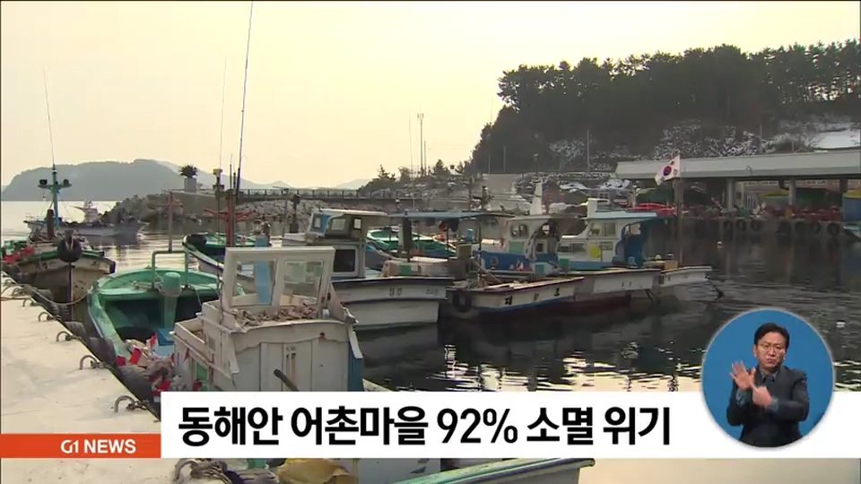 강원연구원이 최근 발표한 자료에 따르면, 도내 강릉과 속초, 동해 등 동해안 6개 시군 68개 어촌마을의 92%가 소멸위험지수 0.5 이하인 것으로 조사됐습니다.