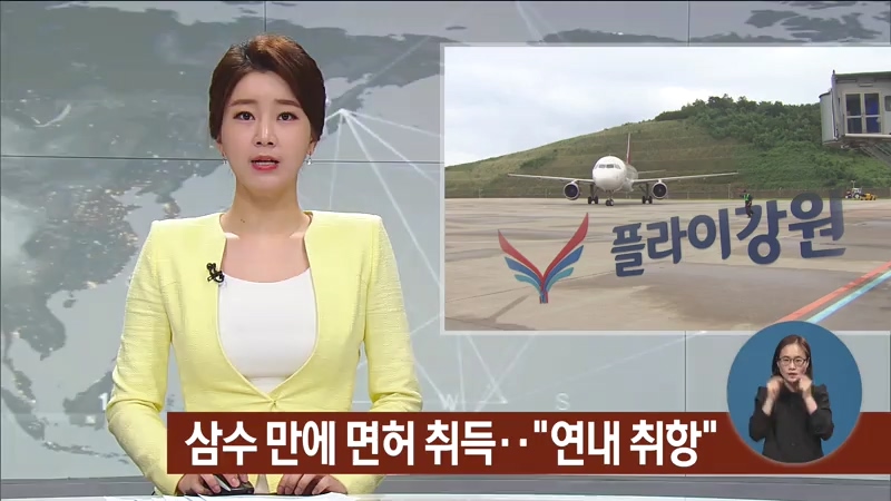 남) 양양 국제공항을 모기지로 하는 민간 저가항공사인 플라이강원이 삼수 만에 면허를 취득했습니다.