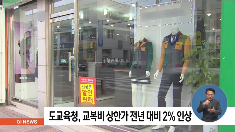 도교육청은 올해 학교 주관 구매 교복 가격을 지난해보다 2% 인상해, 기성 디자인 교복은 동복 21만 8천 원, 하복 8만 8천 원으로, 표준 디자인 교복의 경우 동복 16만 7천 원, 하복 7만 7천 원으로 결정했다고 밝혔습니다.