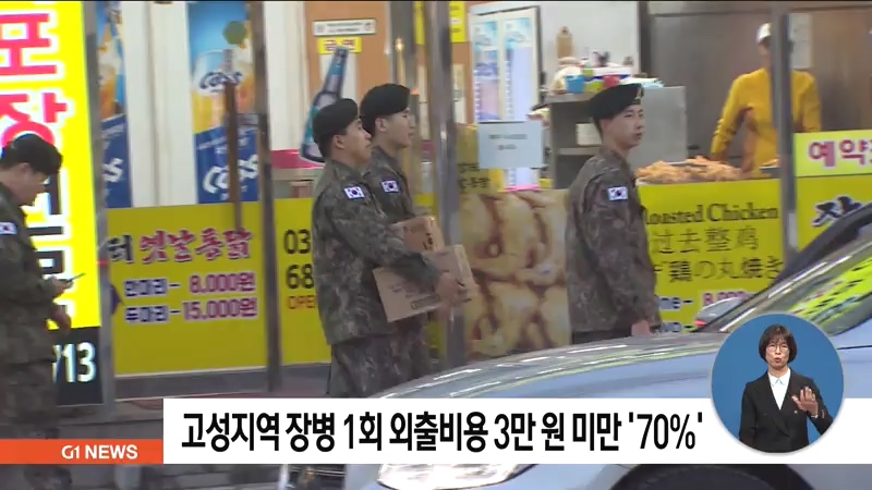 고성에서 복무하는 장병들은 평일 외출 시 상당수가 3만원 미만의 금액을 쓰는 것으로 나타났습니다.