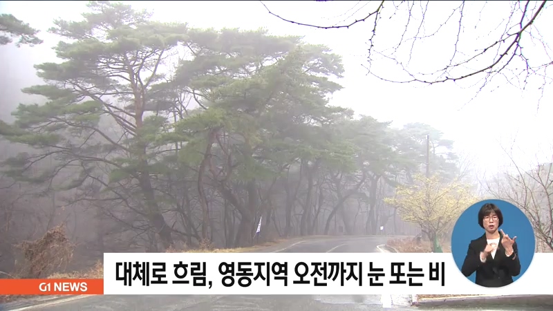 오늘 강원도는 대체로 흐린 가운데 영동지역에는 오전까지 눈이나 비가 내리겠습니다.