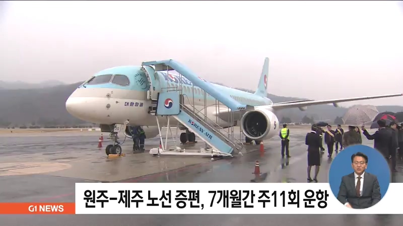 강원도와 대한항공은 어제(31일) 증편 운항을 시작으로 오는 10월 26일까지 130석 규모의 항공기를 투입해, 원주-제주 노선을 기존보다 4회 늘어난 주 11회 운항합니다.