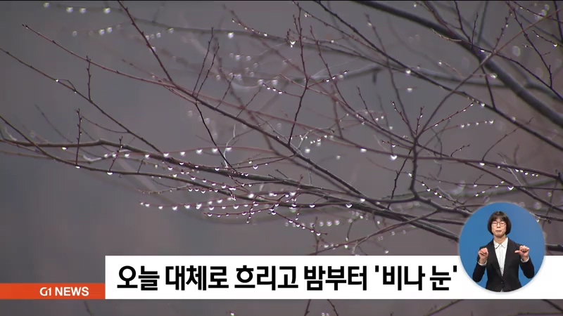 오늘 강원지역은 차차 흐려져 밤부터 전역으로 비나 눈이 오겠습니다.