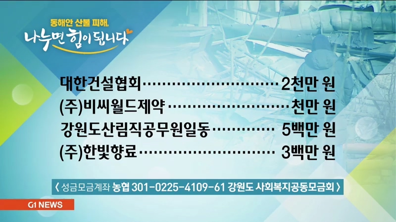 <성금 기탁자> 동해안 산불피해, 나누면 힘이 됩니다