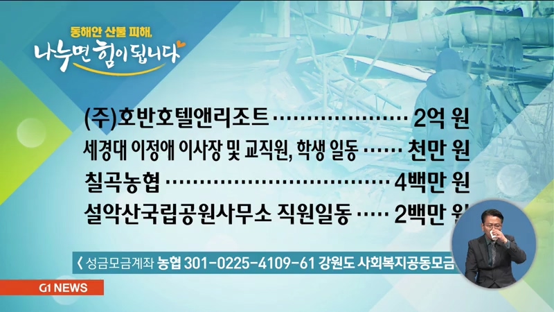<성금 기탁자> 동해안 산불피해, 나누면 힘이 됩니다