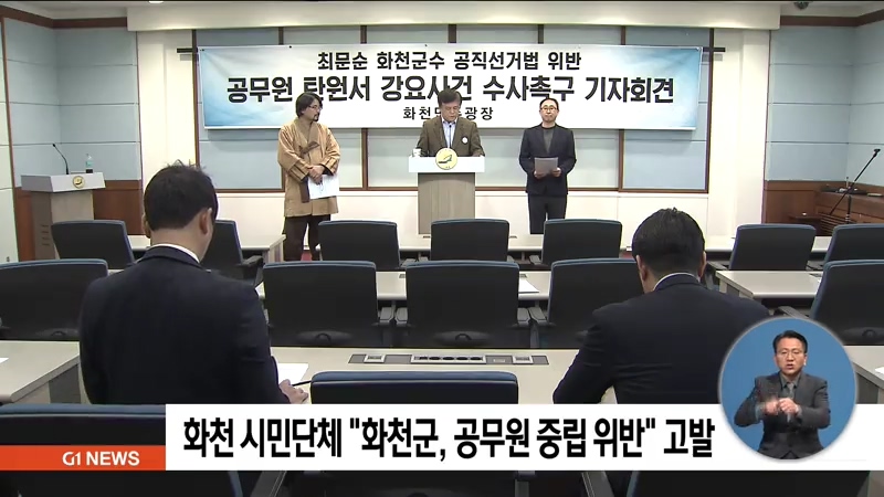 화천지역 시민단체가 화천군 공무원들이 정치적 중립을 위반했다며, 화천군을 검찰에 고발했습니다.