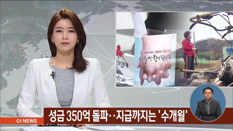 동해안 산불 이재민들을 돕기 위한 성금이 350억원을 넘어 섰습니다.