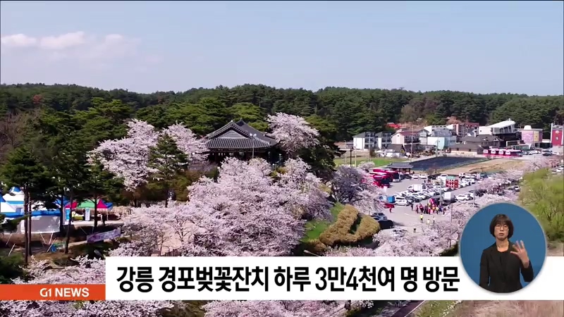 올해 강릉 경포 벚꽃 잔치에 하루 평균 3만 4천 명이 넘는 관광객이 찾은 것으로 분석됐습니다.