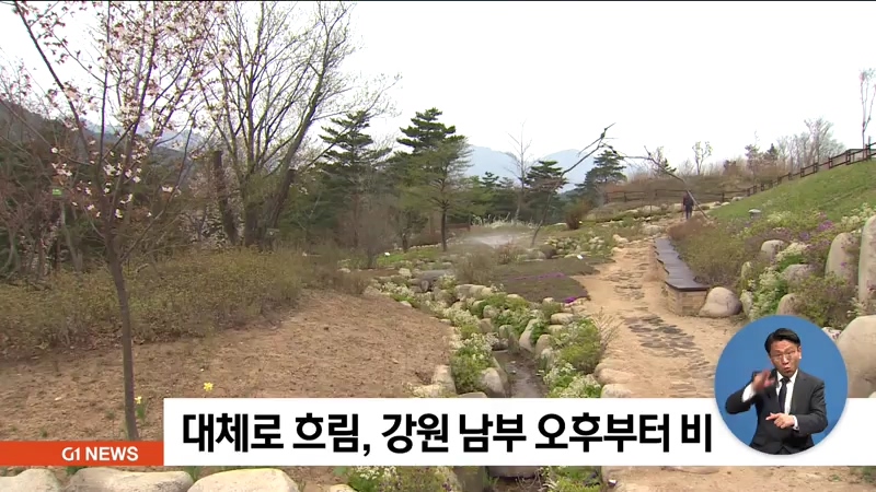 오늘 강원도는 대체로 흐린 가운데, 남부 지역의 중심으로 오후부터 비가 조금 내리겠습니다.