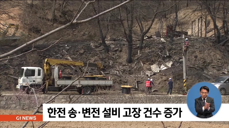 고성 산불의 원인으로 지목된 특고압 전선의 관리 문제가 논란이 되고 있는 가운데, 지난해 한국전력에서 운영하는 송.변전 설비의 고장 건수가 전년에 비해 증가한 것으로 나타났습니다.