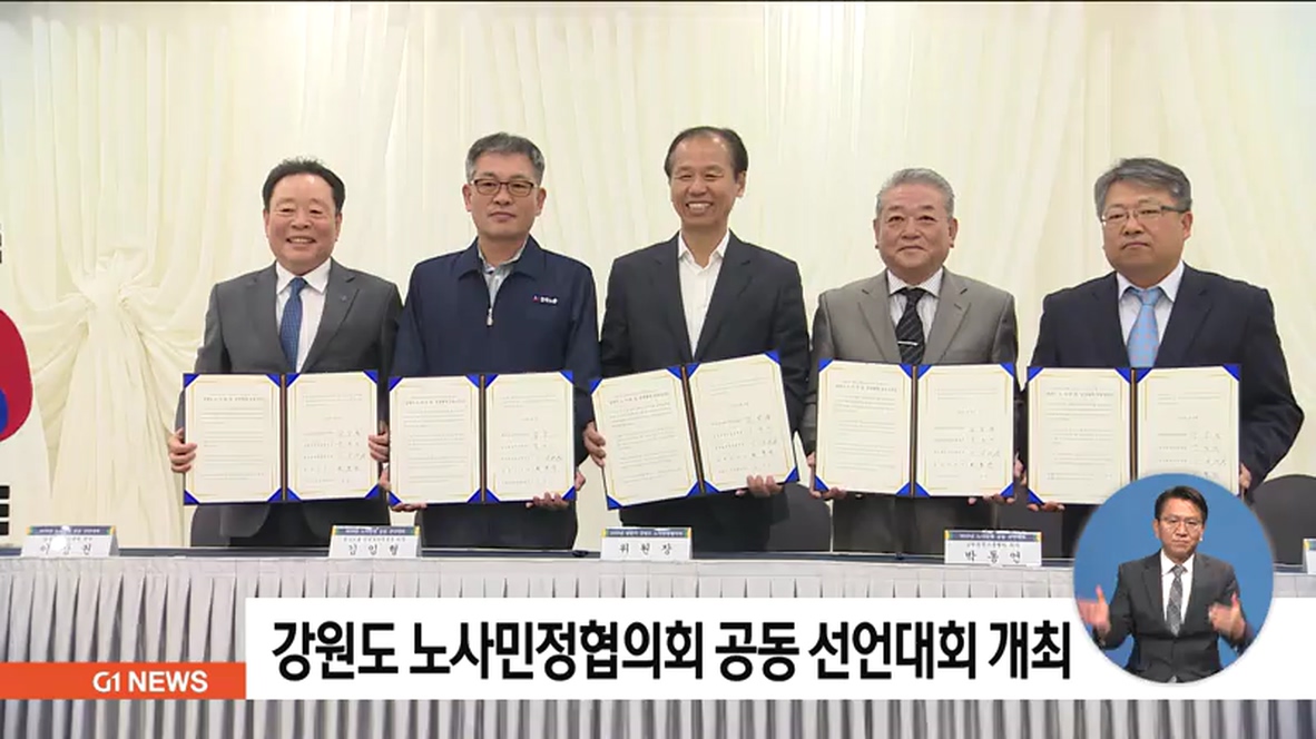강원도 노사민정협의회는 서로 협력해 이모빌리티 강원도형 일자리 모델 발굴과 강원상품권 사용 확대, 일자리 안심공제 활성화와 지속가능한 고용 유지 환경 조성 등의 내용이 담긴 공동 선언을 선포했습니다.