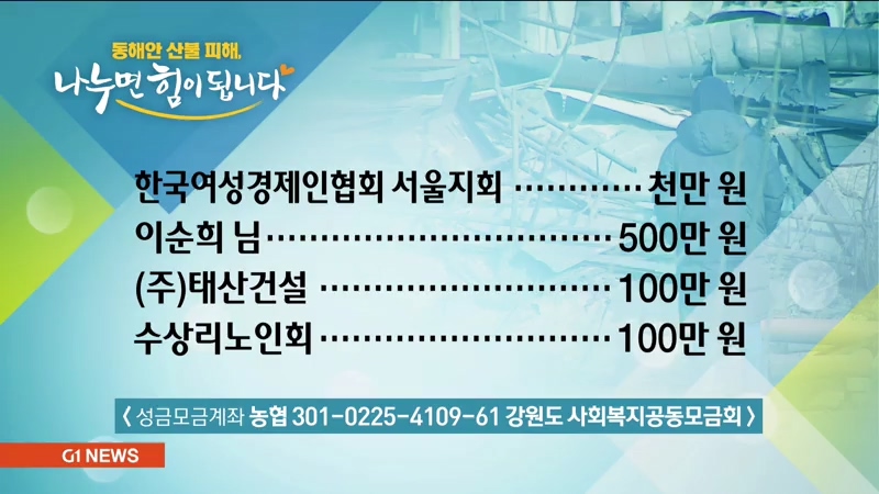 <성금 기탁자> 동해안 산불피해, 나누면 힘이 됩니다