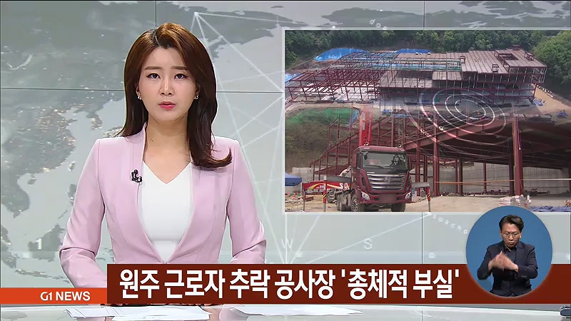 G1 뉴스에서는 근로자 추락 사고가 발생한 원주 기업도시의 한 공장 신축 과정에서,