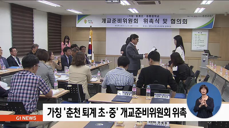 도내에서 처음으로 유치원과 초등학교, 중학교가 통합학교로 운영될 예정인 가칭 '춘천 퇴계초·중학교' 개교준비위원회 위촉식이 춘천교육지원청에서 열렸습니다.