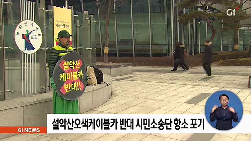 설악산 오색케이블카 사업에 반대하며 문화재청을 상대로 행정소송을 제기했다 패소한 시민소송단이 항소를 포기했습니다.