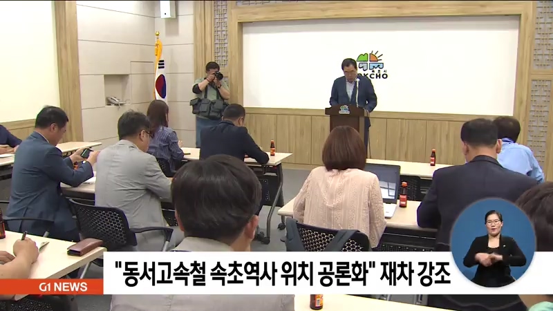 김 시장은 속초시청 브리핑룸에서 간담회를 열고, "동서고속철 역사 위치는 동해북부선과의 연결을 고려해야 하고, 도시 발전과 주요 산업인 관광 전략에도 큰 영향을 끼치는 만큼 신중히 결정해야한다"고 강조했습니다.