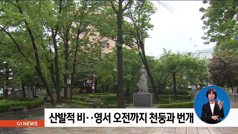 산발적 비..영서 오전까지 천둥과 번개