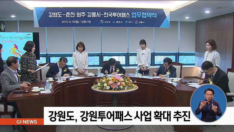 강원도는 어제(10일) 강릉시청에서 한국투어패스와 춘천, 원주, 강릉 등 3개 도시와 '강원투어패스'추진을 위한 업무 협약을 맺었습니다.