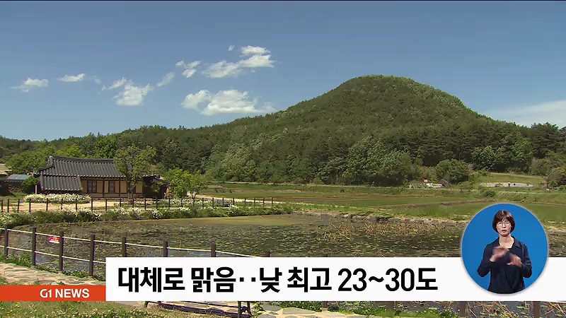 낮 최고기온은 영서지역이 24도에서 30도, 영동지역은 23도에서 27도의 분포로 어제와 비슷하거나 조금 높겠습니다.