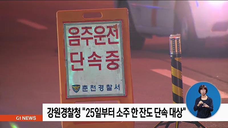 강원지방경찰청은 혈중알코올 농도 단속 기준을 현행 0.05%에서 0.03%로 강화한 제2 윤창호법으로도 불리는 도로교통법 개정안이 오는 25일부터 시행된다고 밝혔습니다.