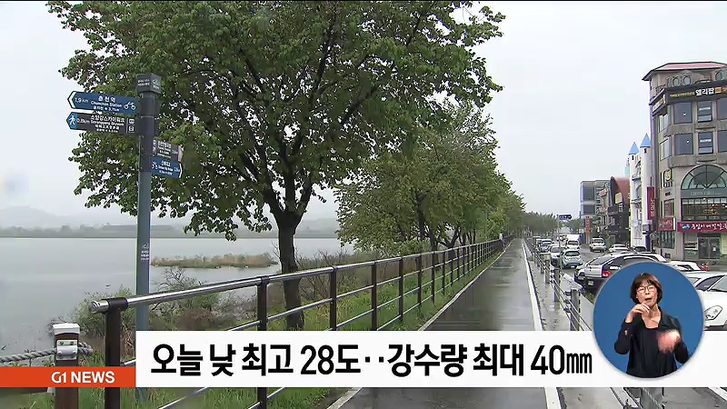 비의 양은 강원 북부지역이 10mm에서 40mm, 중남부 지역이 5mm에서 20mm로 예상됩니다.