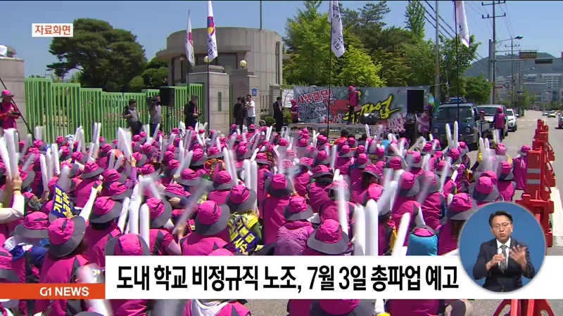 도내 학교 비정규직 노동자들이 공정 임금제와 정규직화를 요구하며 다음달 총파업을 예고했습니다.