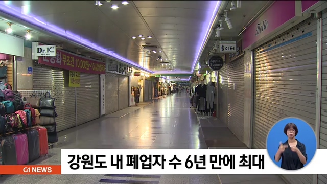지난해 강원도에서 폐업한 자영업자 수가 6년 만에 최대치를 기록한 것으로 나타났습니다.