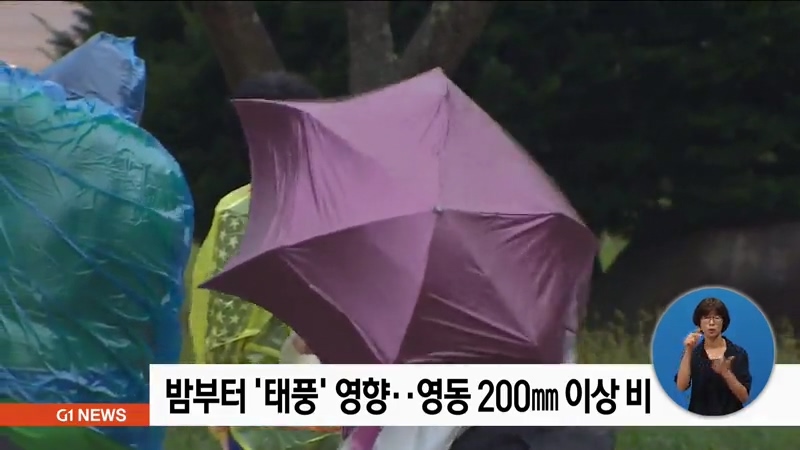 밤부터 '태풍' 영향..영동 200mm 이상 비