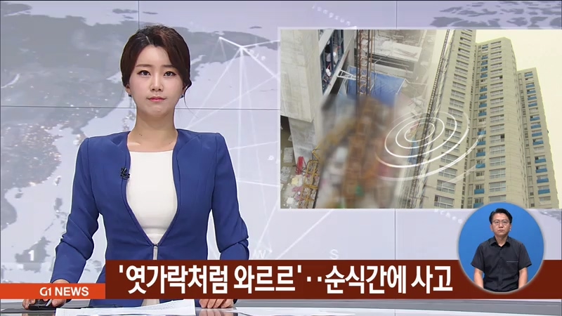 사고 당시 인근에서 찍힌 영상을 보면 노동자들이 탄 승강기의 리프트 카가 순식간에 바닥으로 떨어지면서 지탱하던 구조물도 잡아끌듯 함께 무너졌습니다.