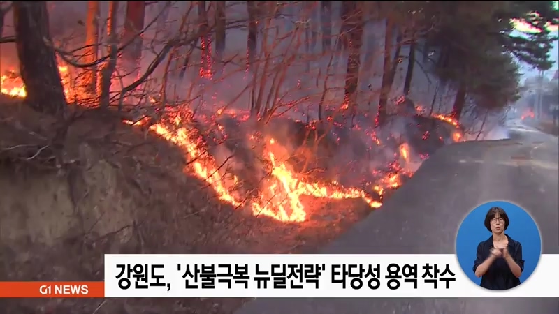 강원도는 지난 4월 발생한 대형 산불을 계기로 새로운 개념의 산불 방지 대책과 복구 방법 모색을 위한 산불극복 뉴딜전략 타당성 검토 용역에 착수했다고 밝혔습니다.